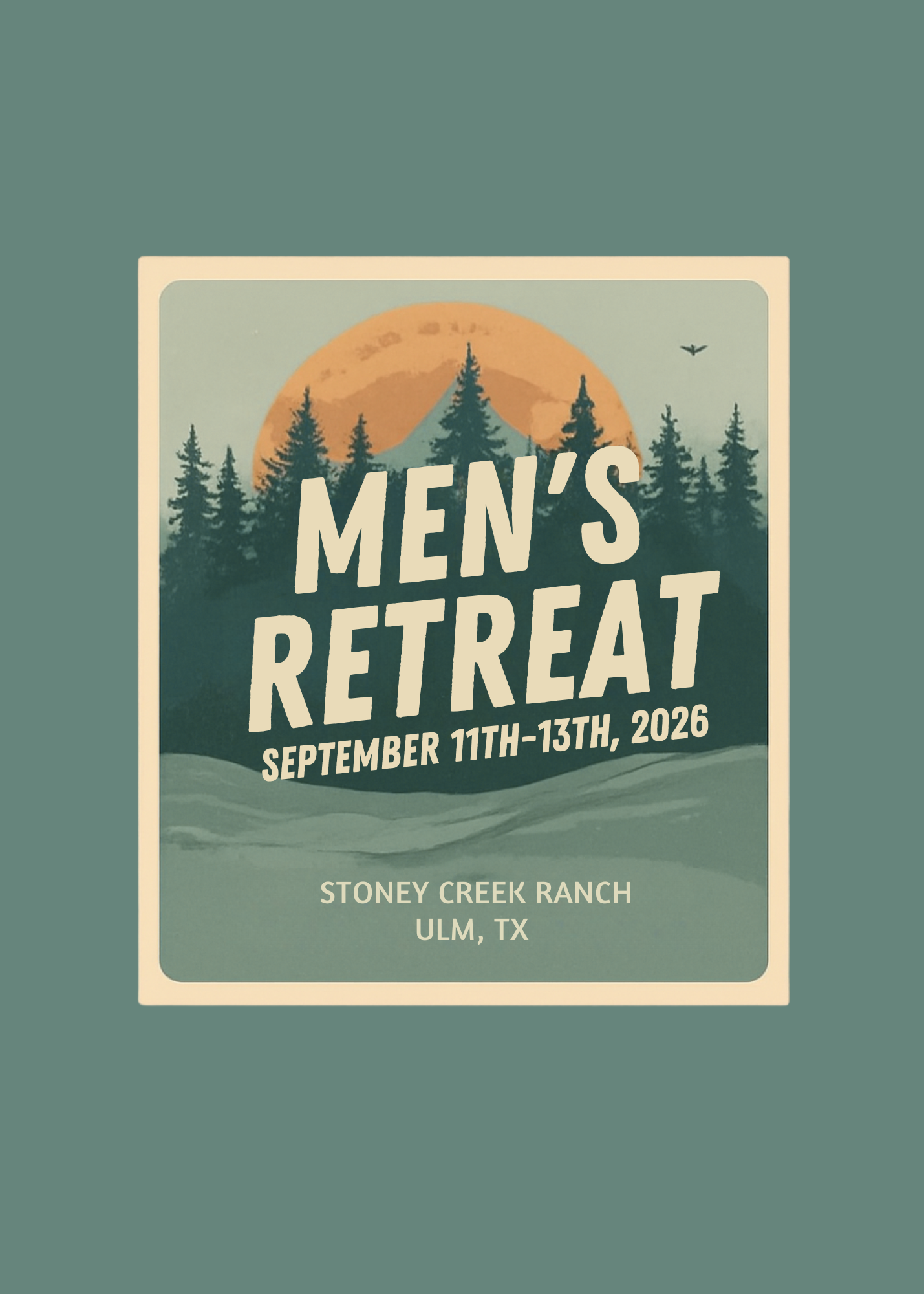 Please join us for our 2026 Men’s Retreat being held at Stoney Creek Ranch in Ulm, TX. We will start the weekend on Friday, September 11th at 10:30 am and wrap it up on Sunday, September 13 at 10:30 am! We will have food, fellowship and fun. Cost is $150.00